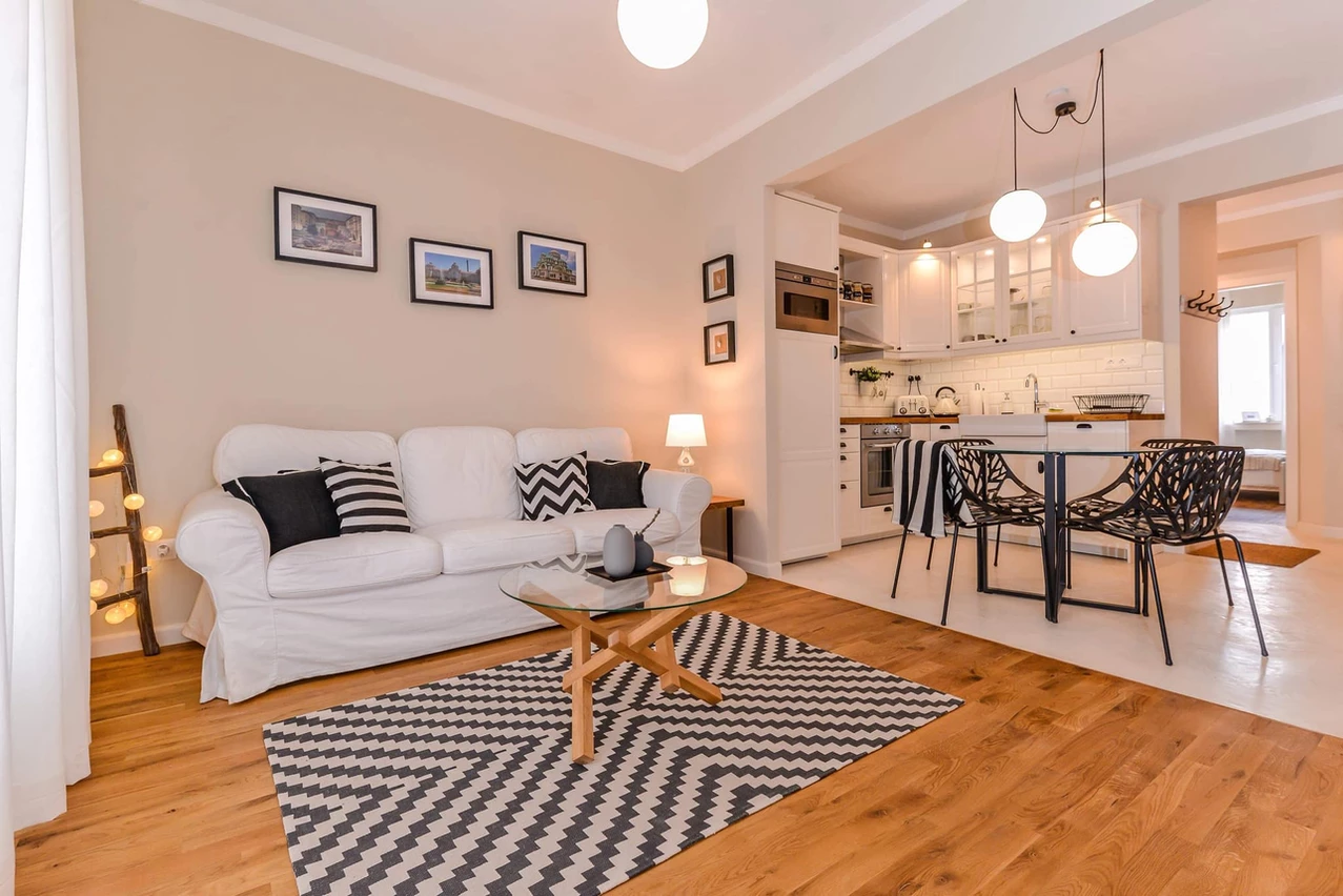 Добавете килим За акцент или пък просто за уют. Някои хостове избягват килимите заради повечето усилия при поддръжката им. Имотите, които управляваме ние обаче, се почистват и поддържат редовно и нашите хостове могат да експериментират с декора си спокойно.